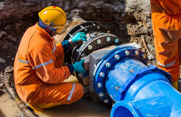 Pose de réseaux sous pression, essais en tranchées, ouvrages annexes et stérilisation des infrastructures.